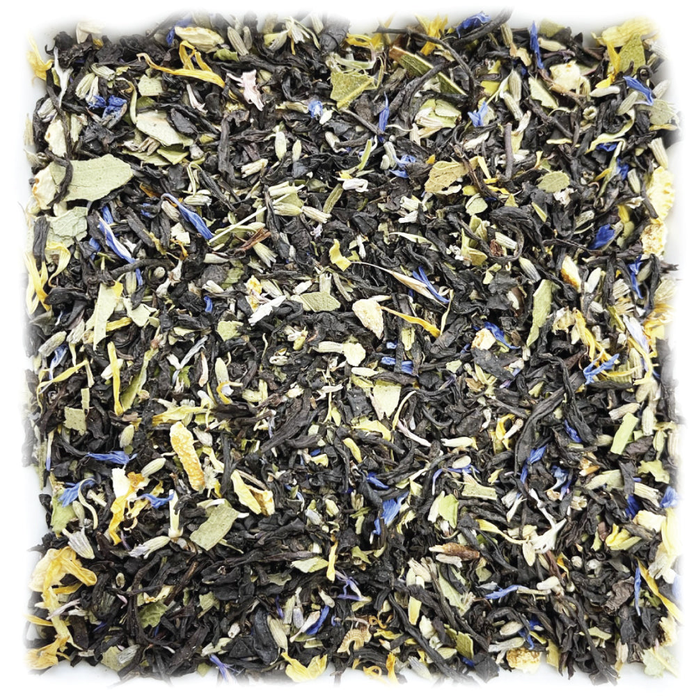 Ingredients: Black tea, lavender, eucalyptus, orange, peppermint, lemon, moringa, cornflower, marigold, lime oil, peppermint oil, eucalyptus oil