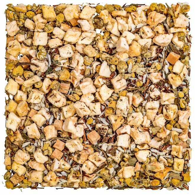 Ingredients: Rooibos, apple, coconut, chamomile, caramel, toffee, blackberry leaves, valerian, natural flavor