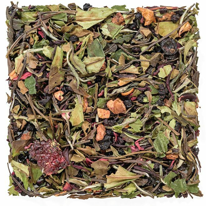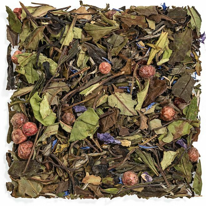Ingredients: White Tea, rosehips, freeze-dried blackcurrants, natural flavor, mallow blossoms, cornflower