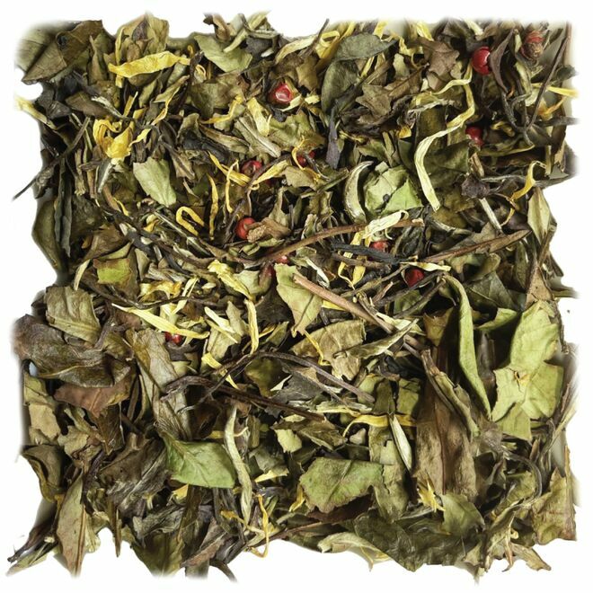 Ingredients: White tea, cinnamon, pink peppercorn, marigolds, natural flavor