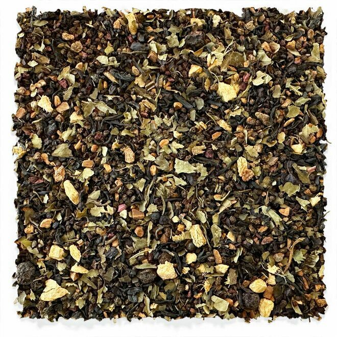 Ingredients: Black tea, cinnamon, ginger, chokeberry, blackberry leaves, beetroot, natural flavor, cardamom, black pepper, blueberries, cloves
